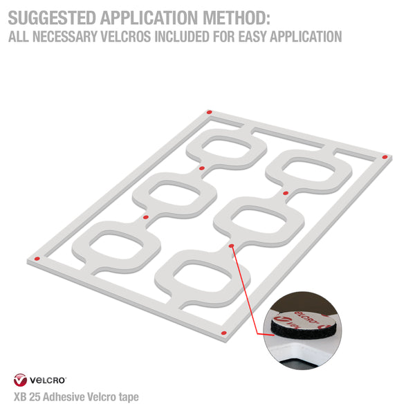 This product includes hook-and-loop fastener dots for easy application. You may also apply this product with nail glue, double-sided tape, silicone, or stainless steel nail. In case of doubt about which type of glue works better on your wall, we suggest you contact your local hardware store.