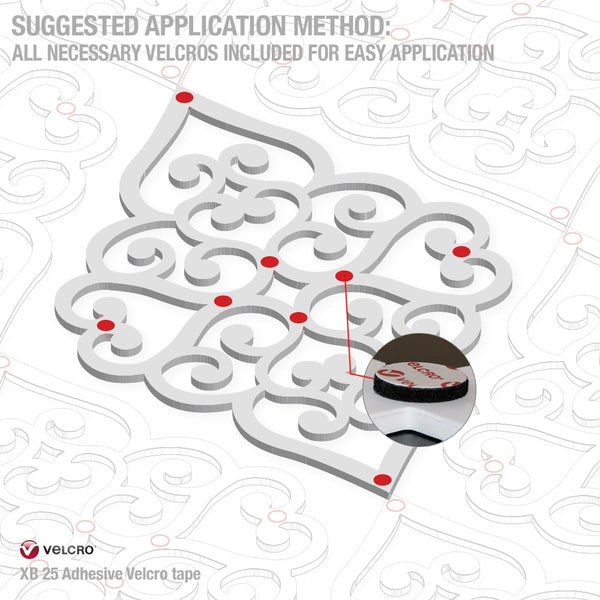 This product includes hook-and-loop fastener dots for easy application. You may also apply this product with nail glue, double-sided tape, silicone, or stainless steel nail. In case of doubt about which type of glue works better on your wall, we suggest you contact your local hardware store.