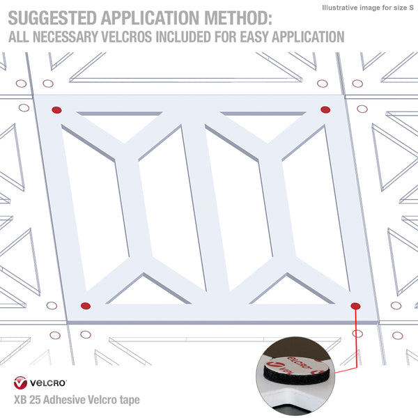 This product includes hook-and-loop fastener dots for easy application. You may also apply this product with nail glue, double-sided tape, silicone, or stainless steel nail. In case of doubt about which type of glue works better on your wall, we suggest you contact your local hardware store.