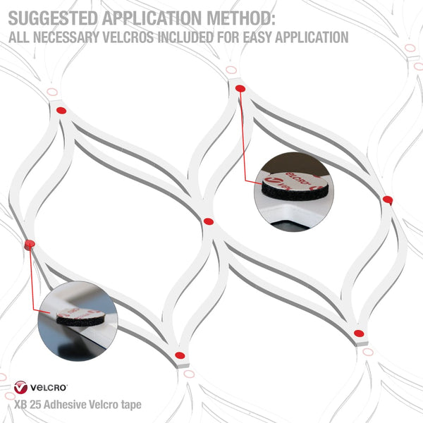This product includes hook-and-loop fastener dots for easy application. You may also apply this product with nail glue, double-sided tape, silicone, or stainless steel nail. In case of doubt about which type of glue works better on your wall, we suggest you contact your local hardware store.