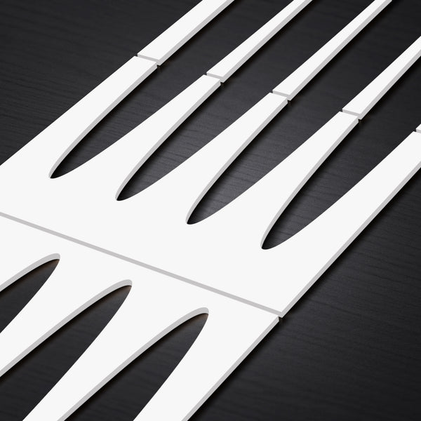 This product is made of 5 mm | 0.20 inches thickness plastic and is available in multiple colors (check the colors available in this product on the options). The white option can be easily painted with spray paint for plastics. The cuts are made precisely by CNC ensuring accuracy and precision in every panel. Also, they do not have any sanding, pore or paint treatment.