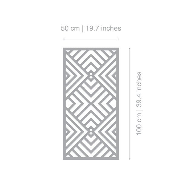 A decorative panel with the dimensions 50 x 100 cm | 19.7 x 39.4 inches (width x height).