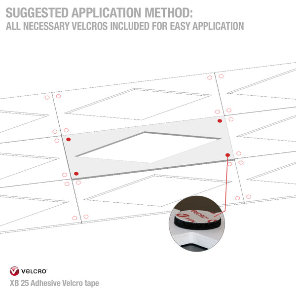 This product includes hook-and-loop fastener dots for easy application. You may also apply this product with nail glue, double-sided tape, silicone, or stainless steel nail. In case of doubt about which type of glue works better on your wall, we suggest you contact your local hardware store.