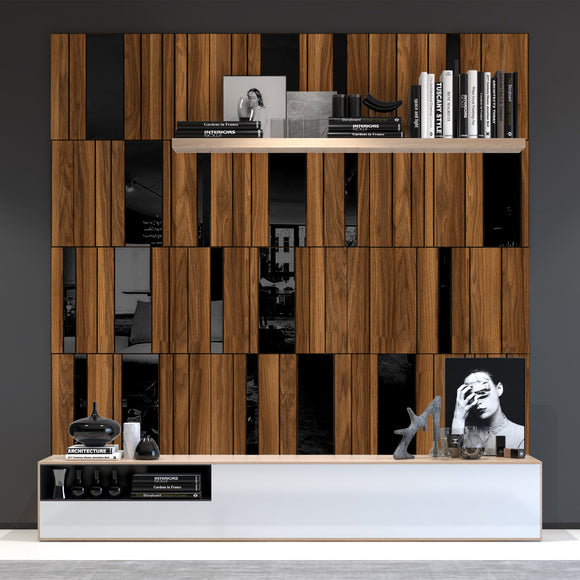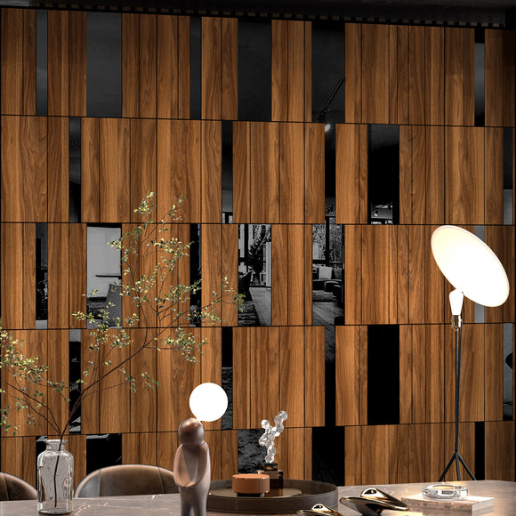 Dark Wood and Black Mirror Gloss 3D Wall Panels
