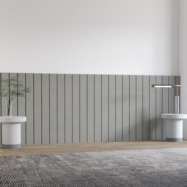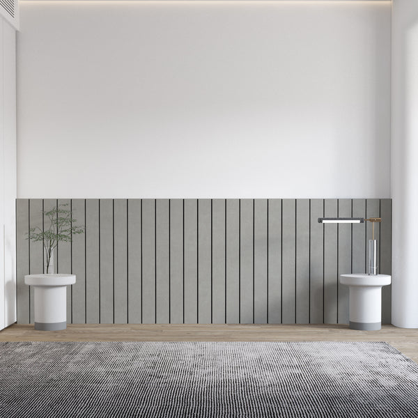 This product is made of 5 mm | 0.20 inches thickness black plastic with a vinyl layer of textured concrete imitation. The cuts are made precisely by CNC ensuring accuracy and precision in every panel. We produce the panels with the concrete vinyl batch we have in stock which means that to ensure that your panels have the same colors and tones, we recommend that you purchase all the packs you need for your project in the same order.